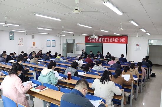 在5号教学楼C-303召开第三届教职工暨工会会员大会第一次会议。学院党委成员包春江、孙群、张涛、赵岭,以及全体教职工出席会议。会议由党委副书记、副院长张涛主持。