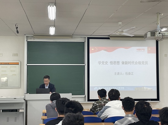 党委书记包春江于东校区5号教学楼C-303为入党积极分子讲党课,第三十二期入党积极分子培训班全体成员参加。