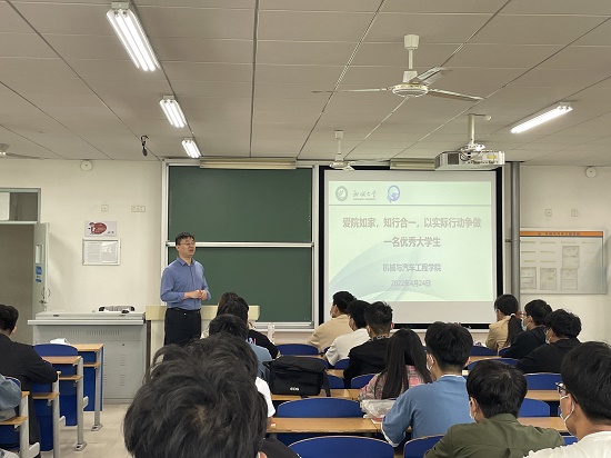 院长孙群于东校区5号教学楼C-302为入党积极分子讲党课,第三十二期入党积极分子培训班全体成员参加。