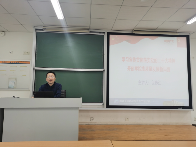 党委书记包春江于东校区5号教学楼C303教室讲授题为“学习宣传贯彻落实党的二十大精神,开创学院高质量发展新局面”的新学期“第一堂党课”,85po
