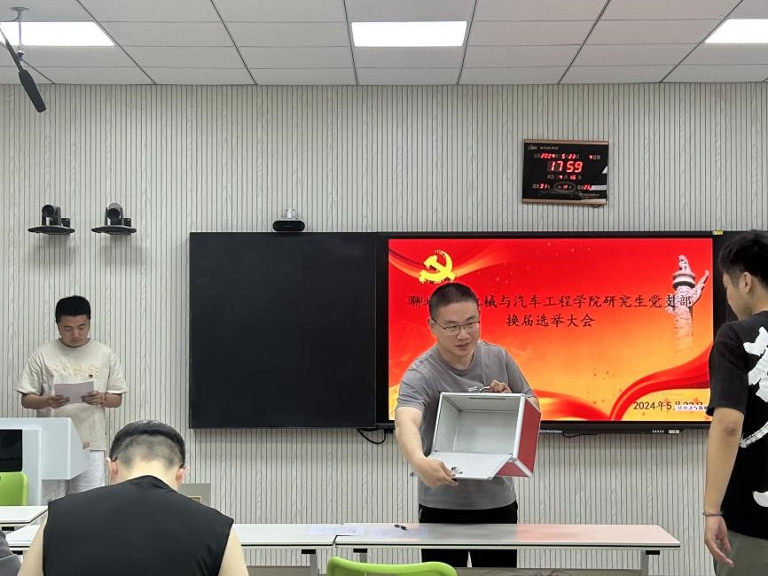 研究生党支部在5c-408召开换届选举大会。支部全体党员参加会议,支部宣传委员王帅主持会议。