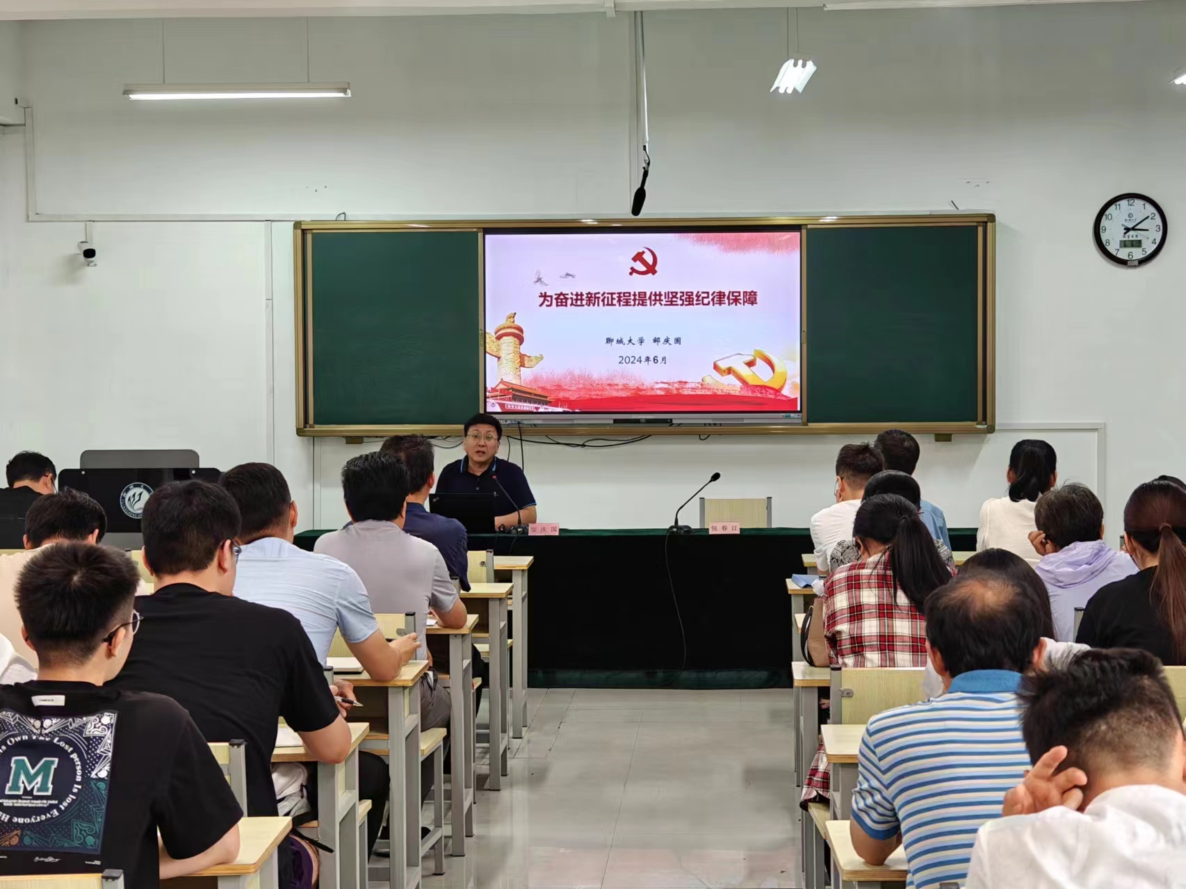 《中国共产党纪律处分条例》宣讲团成员、政治与公共管理学院教授邹庆国以《为奋进新征程提供坚强纪律保障》为题,结合实际案例,对《中国共产党纪律处分条例》的新增及修改情况进行了深入解读。他指出,重视纪律建设是党的优良传统,纪律严明是党的独特优势。他强调了加强纪律意识和提高党员修养的重要性,引导党员干部在工作中始终坚守纪律底线。党员干部要准确把握《中国共产党纪律处分条例》的主旨要义和规定要求,自觉把思想和行动统一到党中央的决策部署上来,不断用党的创新理论凝心铸魂,不断增强思想自觉、政治自觉、行动自觉。 然后包春江通报了高校党员干部违纪违法典型案例,全体与会人员集中观看了警示教育片。警示教育案例和警示教育片通过鲜活的案例,揭示了违纪违法者从思想松懈到行为失范,最终走向堕落深渊的过程,引导全体党员干部尤其是年轻干部从典型案例中吸取深刻教训,以案为鉴、以案促改、以案促治,时刻保持清醒头脑,坚守纪律底线,扣好廉洁从政“第一粒扣子”。