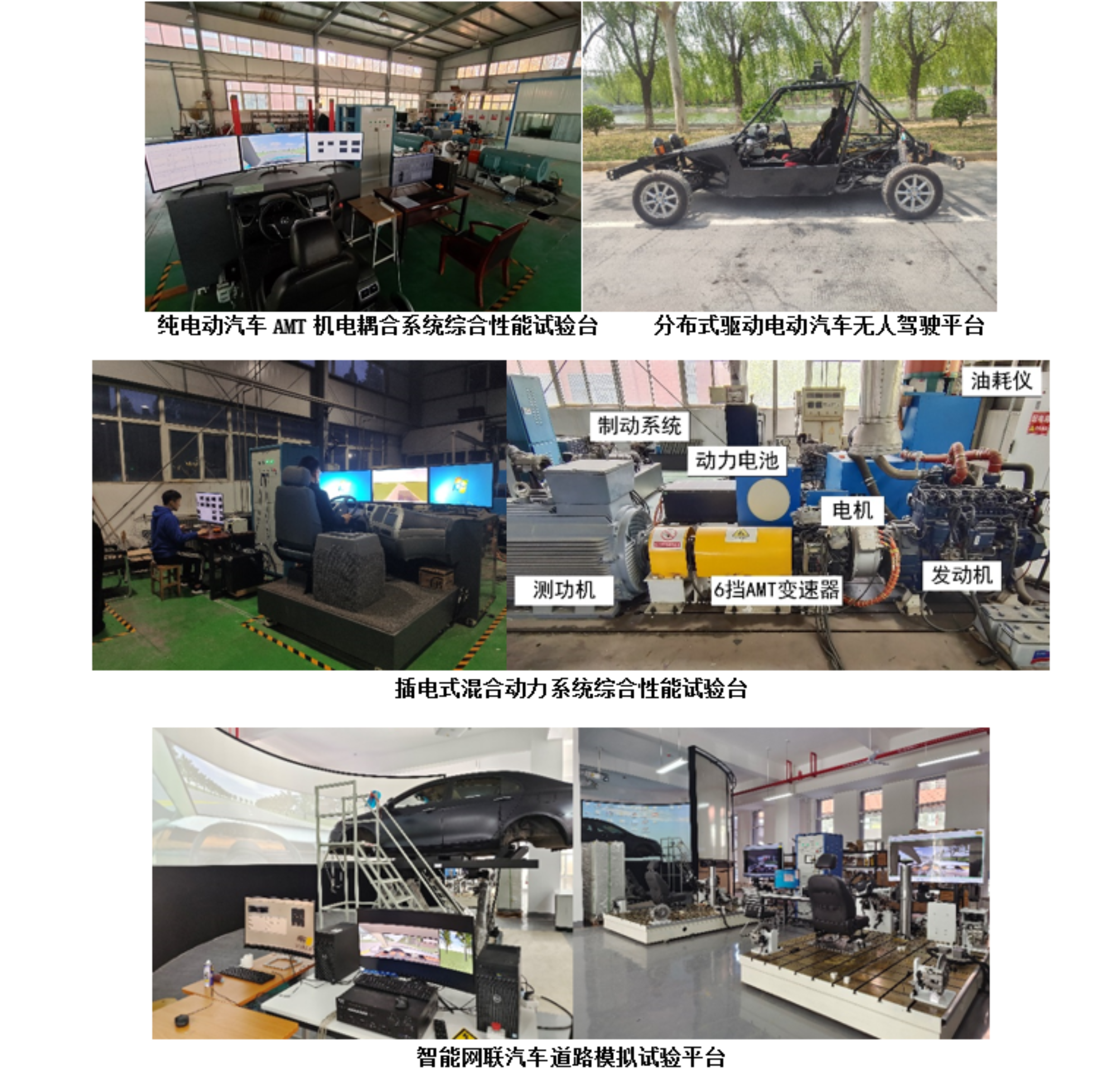 研究所科研实验室拥有纯电动汽车AMT机电耦合系统综合性能试验台、分布式驱动电动汽车无人驾驶平台、插电式混合动力系统综合性能试验台、智能网联汽车道路模拟试验平台等,仪器设备国内先进,为车辆工程学科专业的人才培养、科学研究、社会服务提供强大支撑。