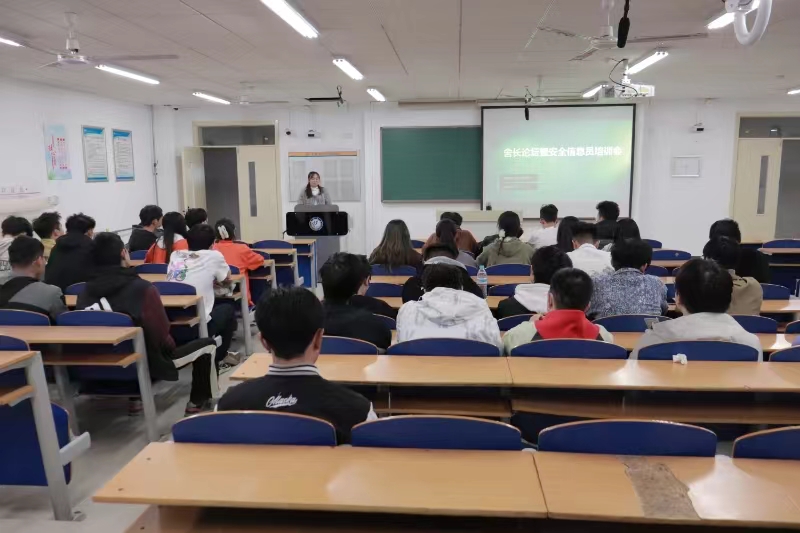 在5号楼C403召开舍长论坛暨安全信息员培训会,会议由分管宿舍工作的辅导员司德友和葛瑶主持,各年级舍长参加。
