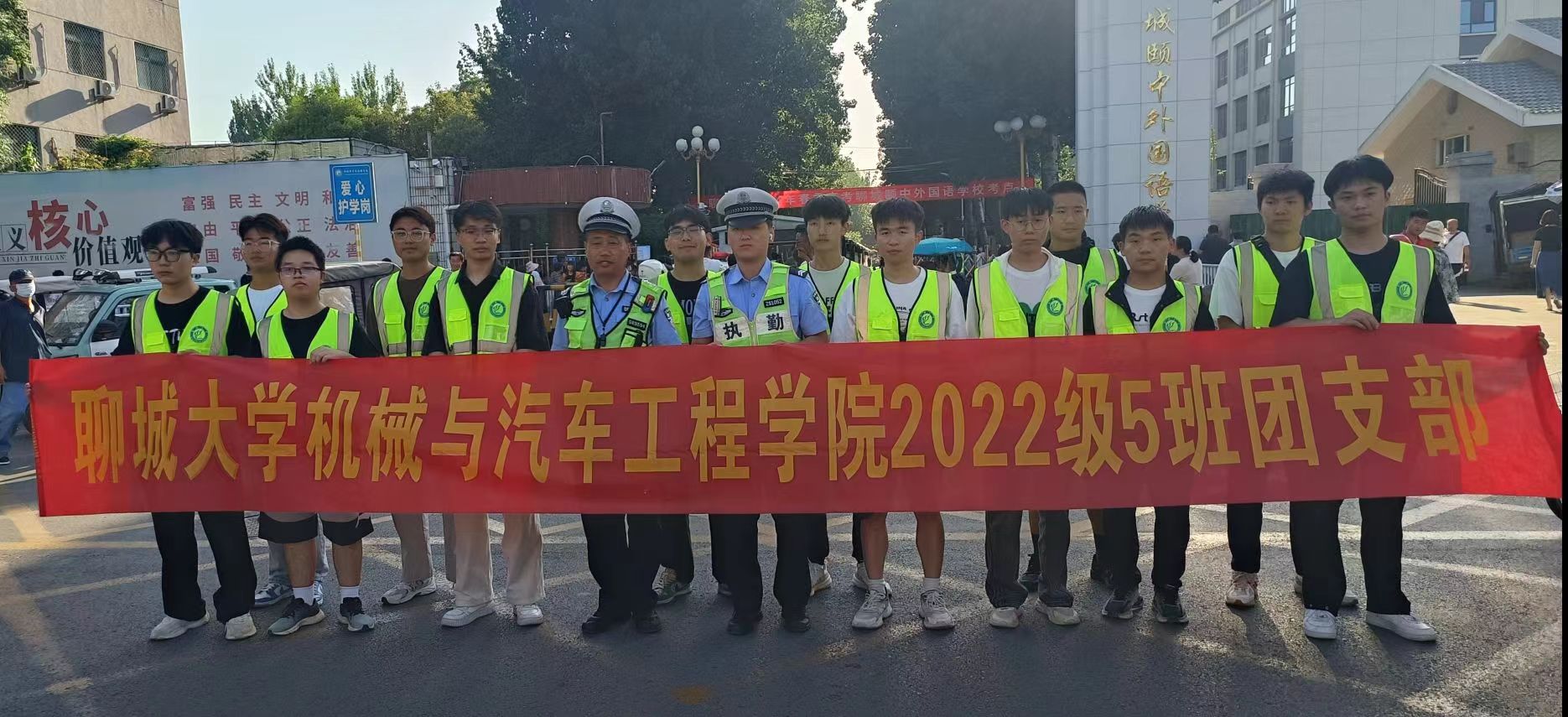 2022级5班团支部同学走进柳园路外国语小学周边,开展了一场别开生面的“疏导交通,共筑平安”协助交警志愿服务主题团日活动。