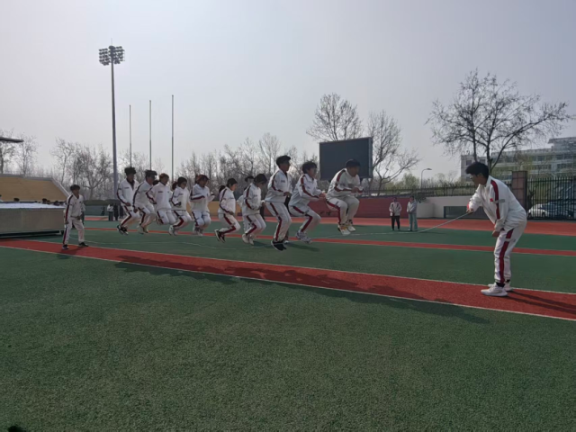 于西校区南田径场举行“绳采飞扬起,青春正当时”跳长绳比赛。85po