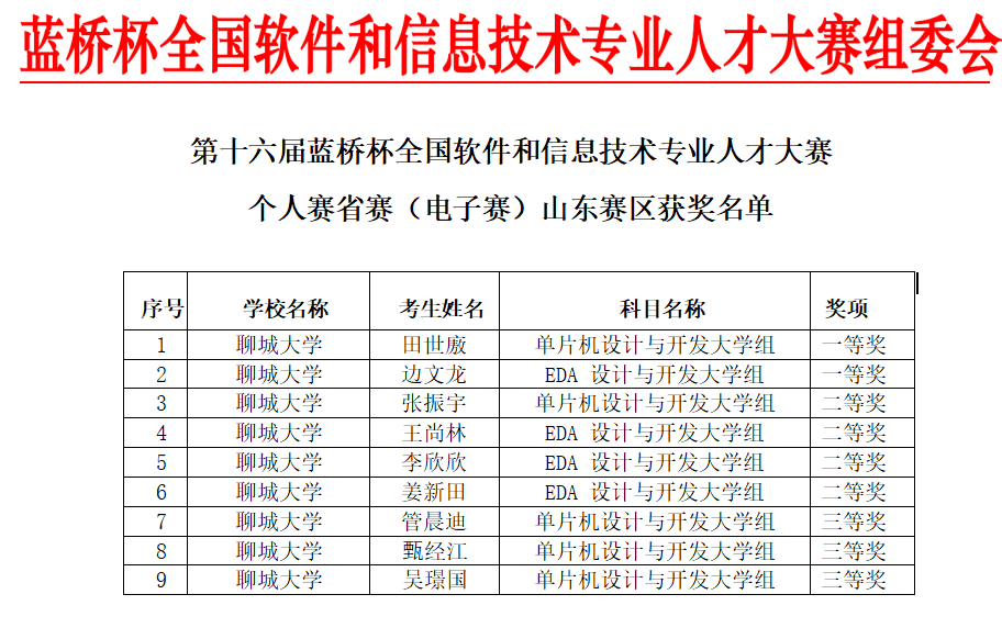 近日,第十六届蓝桥杯全国软件和信息技术专业人才大赛个人赛省赛(电子赛)山东赛区获奖名单公布。85po