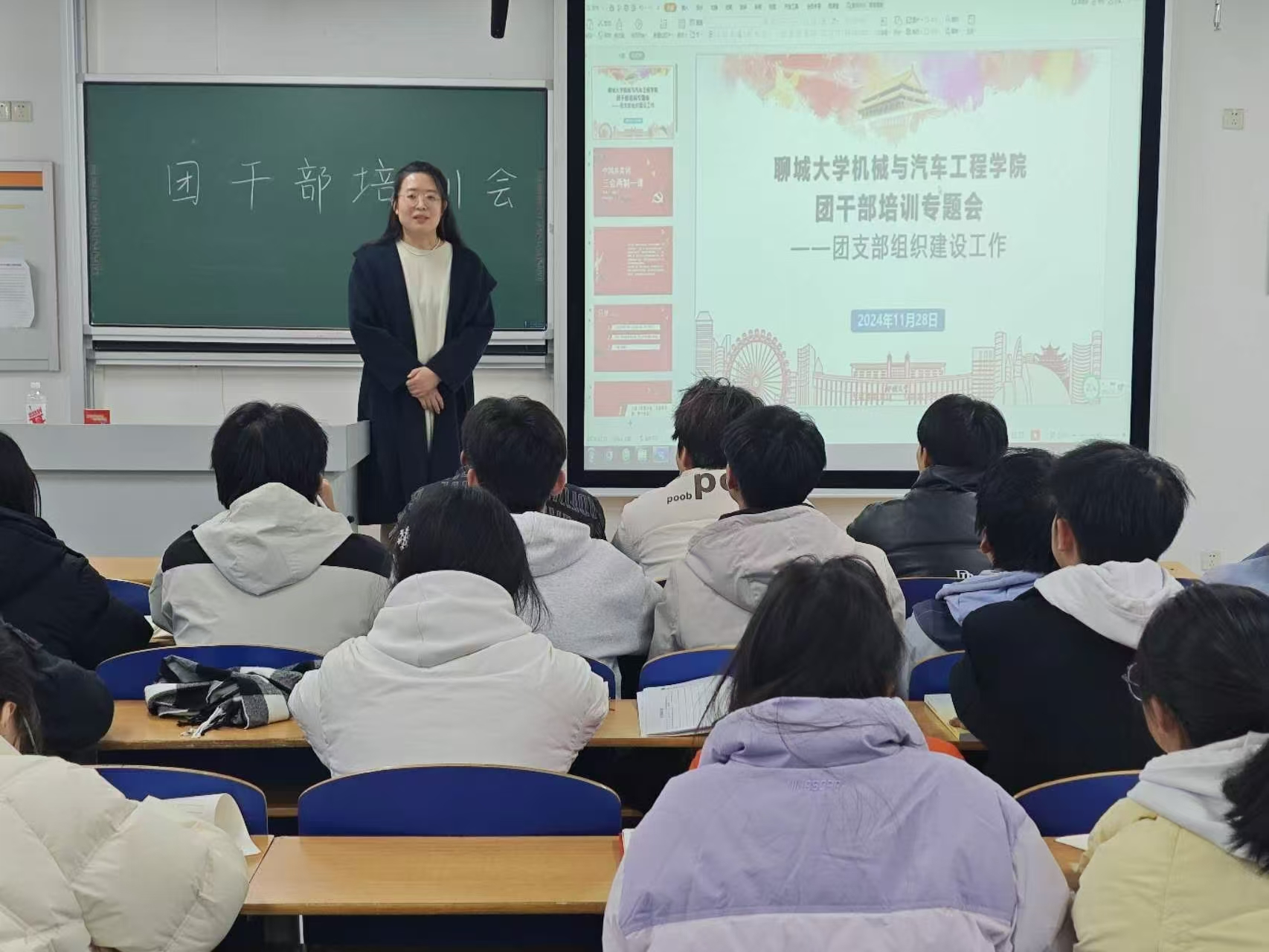 于东校区5C303开展团干部培训专题会,学院团委书记张曙光和各班团支部书记参加会议。