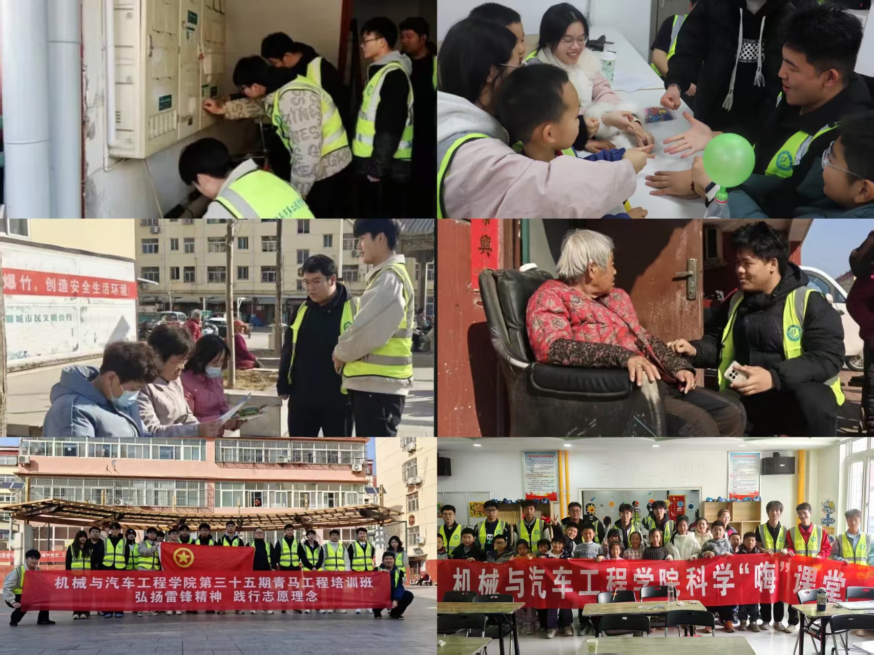 学院推动志愿服务向专业化、精准化迈进,青马班学员、学生会组织、团支部等志愿者团队深入社区,以行动书写新时代的雷锋故事。志愿者为老人讲解交通安全知识,以工科专业素养开展“安全体检”,排查社区公共设施隐患;联合社区举办防诈骗宣传活动,通过案例讲解、发放手册等方式,重点提升老年群体防骗意识,助力构建平安社区;开展“科学小课堂”,带领社区儿童体验“科学之旅”,用行动诠释爱心,在社区种下科学的种子。
