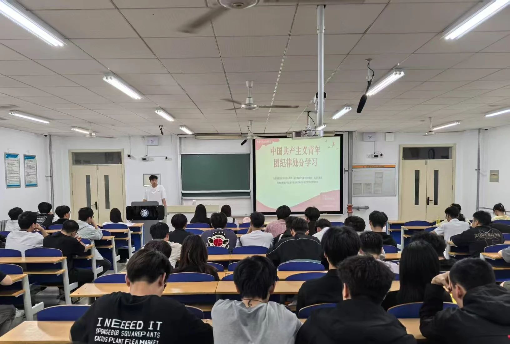 团委以“学深、悟透、做实”为目标,组织新一批团员、入团积极分子开展《中国共产主义青年团纪律处分条例(试行)》《中国共产主义青年团纪律处分工作规则(试行)》专题学习,院团委助理任亚通领学。
