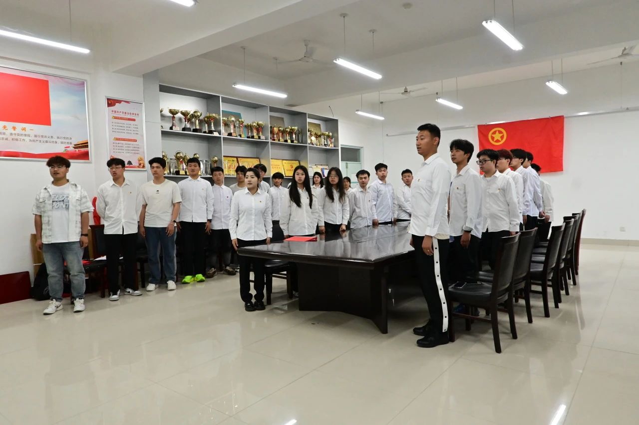 于学院三楼会议室举行新发展团员入团仪式,学院团委书记张曙光、优秀团员代表、35名新发展团员参与此次活动。