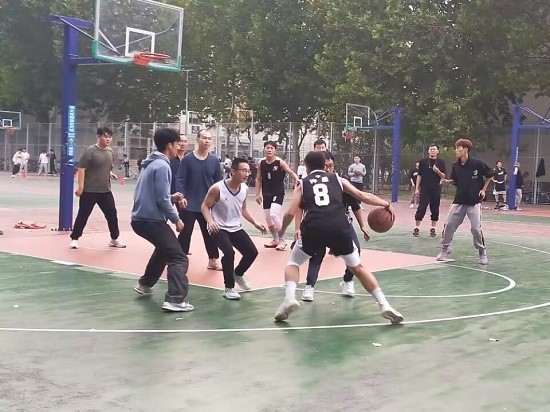 东校篮球场举行师生篮球赛。85po