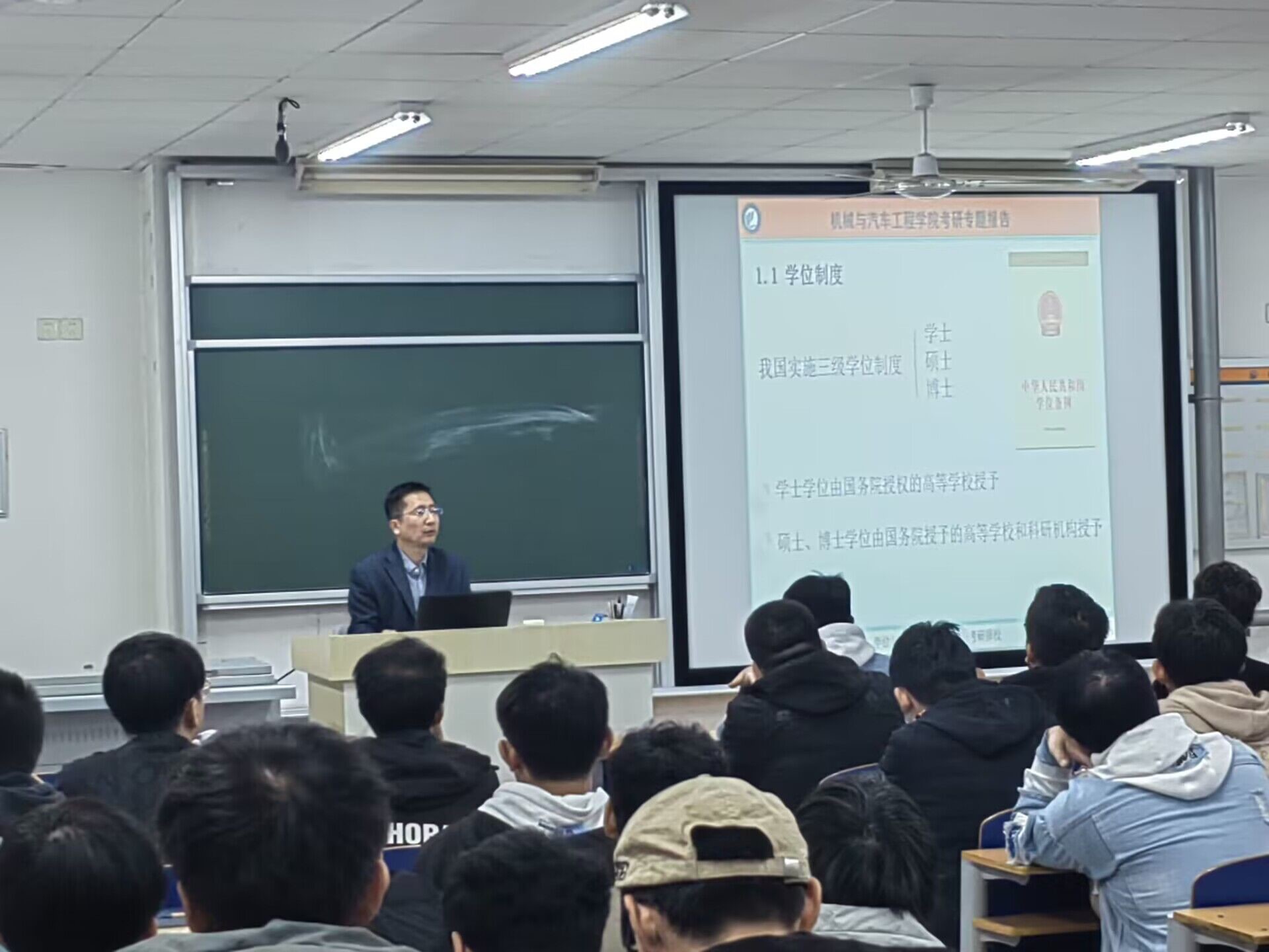 在东校区5号教学楼C302教室举办考研专题报告会,学院党委书记包春江以《学位与研究生教育 学科与考研择校》为题作专题报告,2020级本科生参会聆听报告。报告会上,包春江介绍了我国学位制度与类型,研究生教育学科专业目录与学位授予等知识,以及国家重点大学和重点学科、“双一流”建设高校及建设学科等情况,分析了全国历年考研分数线和考研人数、学院历年考研情况及未来考研趋势。包春江为同学们设计了科学的考研备战时间表,即准备、复习初期、强化提高、冲刺、初试、复试调剂六阶段内容,并寄语同学“挑战自我,持之以恒,系统把握,劳逸结合”实现考研梦想。最后,针对同学们的提问,包春江一一回答。