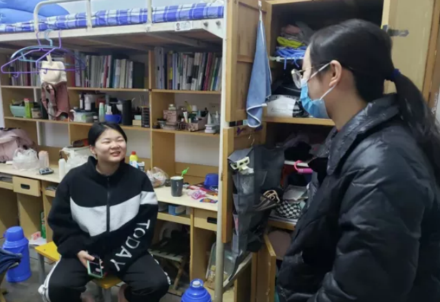 走访过程中,辅导员老师们每到一个宿舍都与同学们亲切交谈,详细询问学生当前学习、生活等情况,认真倾听同学们的想法与建议,关切之情溢于言表。同时叮嘱同学们,注意寝室卫生,养成多通风的好习惯,做好身体健康监测,加强个人防护;保持理性认知,理解并遵守学校所采取的管理措施及规定,全力配合学校共同做好疫情防控工作;科学规划,劳逸结合,将学习放在首位,利用这一特殊时期,实现自我成长与提升;保持积极向上精神状态,坚定必胜信心,常与家人联系。宿舍走访有效帮助学生疏导心理压力,培养学生身心和谐,缓解同学负面情绪,减轻心理负担,助力健康成长。