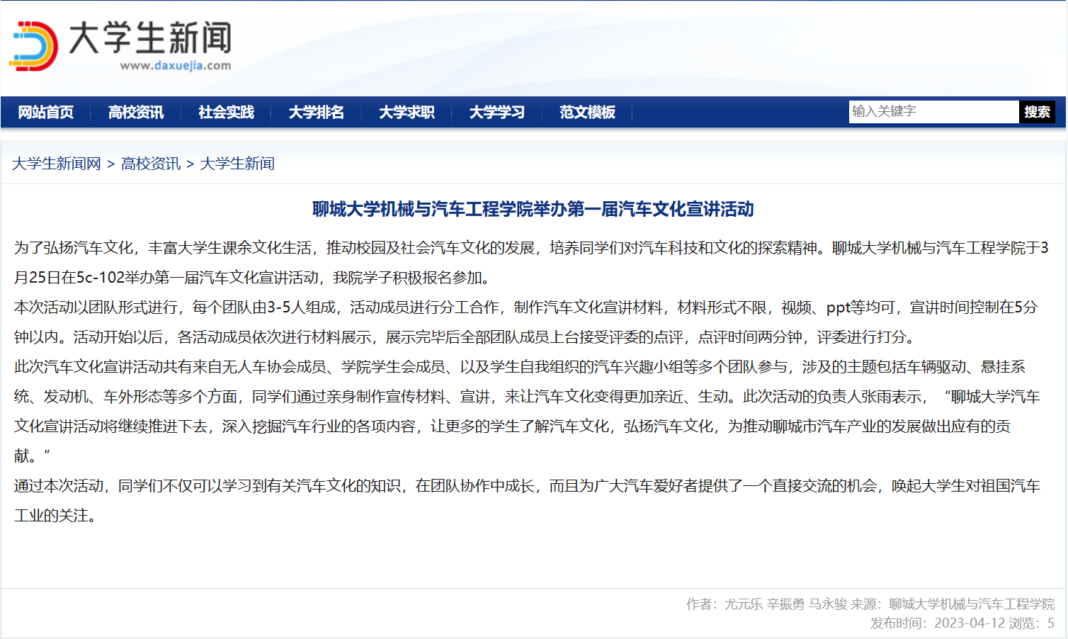 相关链接:85po 举办第一届汽车文化宣讲活动 - 大学生新闻网 (daxuejia.com)
