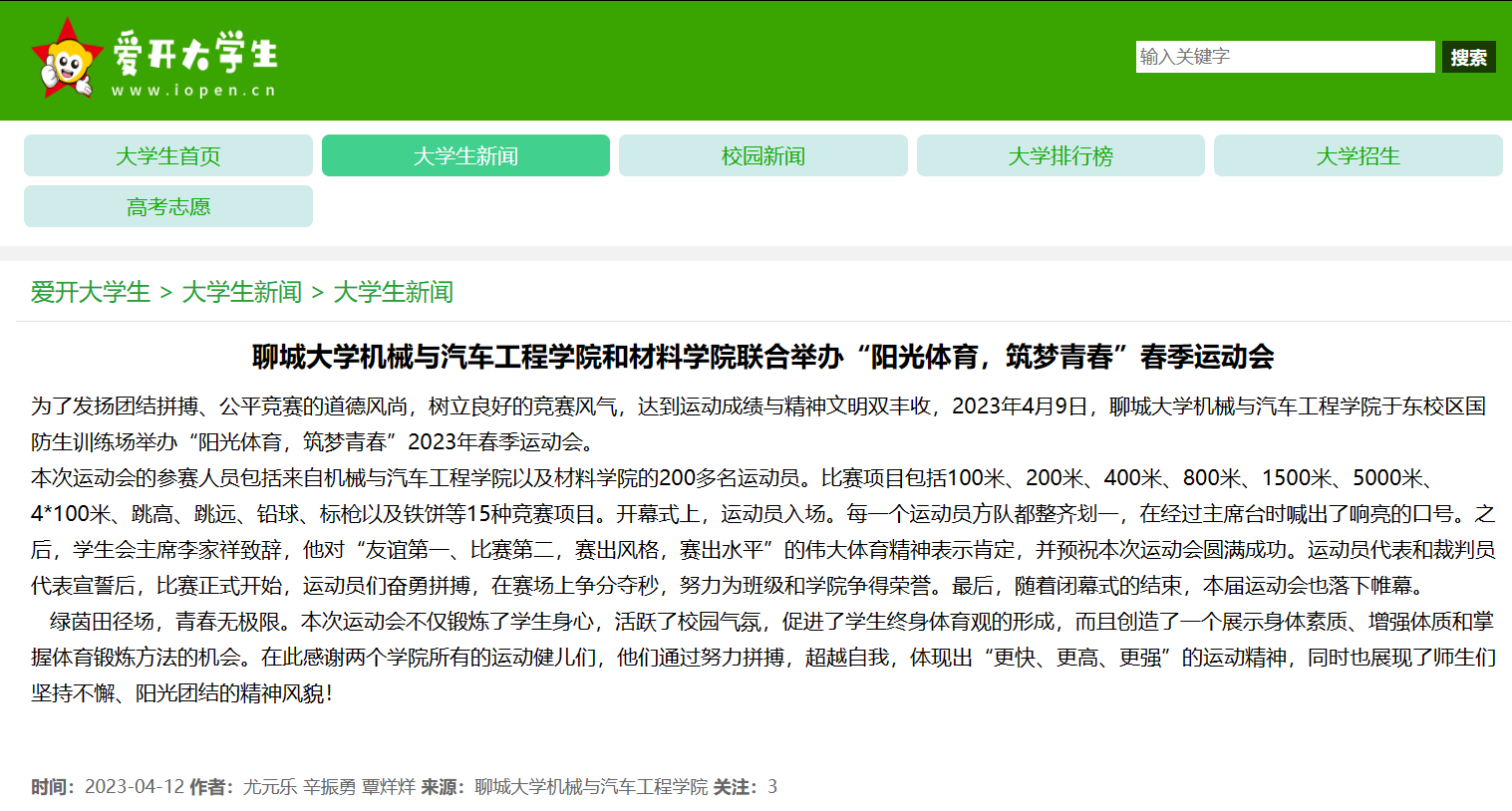 相关链接:85po 和材料学院联合举办“阳光体育,筑梦青春”春季运动会 - 爱开大学生网 (iopen.cn)