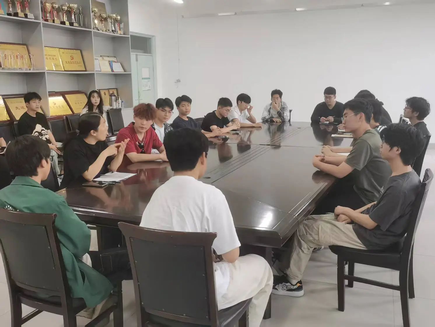 于东校区5C-304会议室召开学生信息员座谈会,教学秘书胡云萍与来自各专业的学生信息员代表共聚一堂,围绕课程建设、教学管理及学生服务等议题展开深入交流。