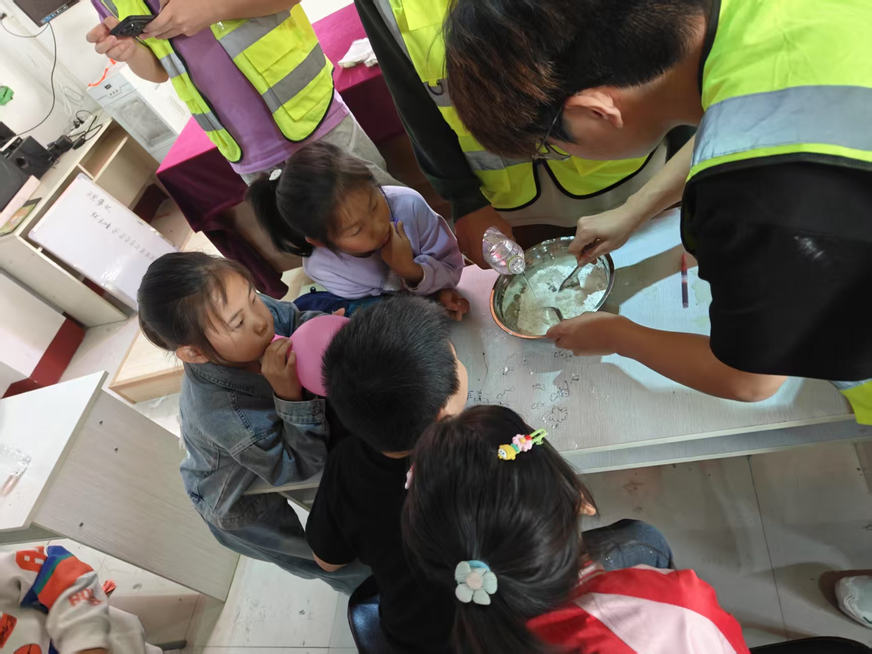 随后的科学小实验环节,将活动气氛推向高潮。志愿者们通过趣味讲解和精彩演示,展现化学变化的绚丽、物理现象的奇妙,引得孩子们惊叹连连、目不转睛。演示结束后,孩子们在志愿者的指导下亲手操作实验,在动手实践中感受科学魅力,培养创新思维,更在合作互动中增进了友谊。