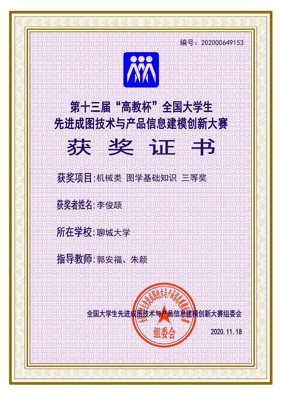2020年11月14日,由教育部高等学校工程图学课程教学指导委员会、中国图学学会制图技术专业委员会和中国图学学会制图技术专业委员会和中国图学学会产品信息建模专业委员会联合主办的第十三届全国大学生先进成图技术与产品信息建模创新大赛采用线上线下结合的形式举行。