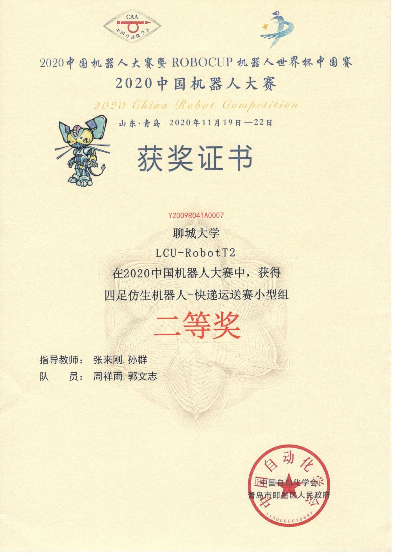 热烈庆祝郭文志、周祥雨同学在2020机器人大赛中获得二等奖。