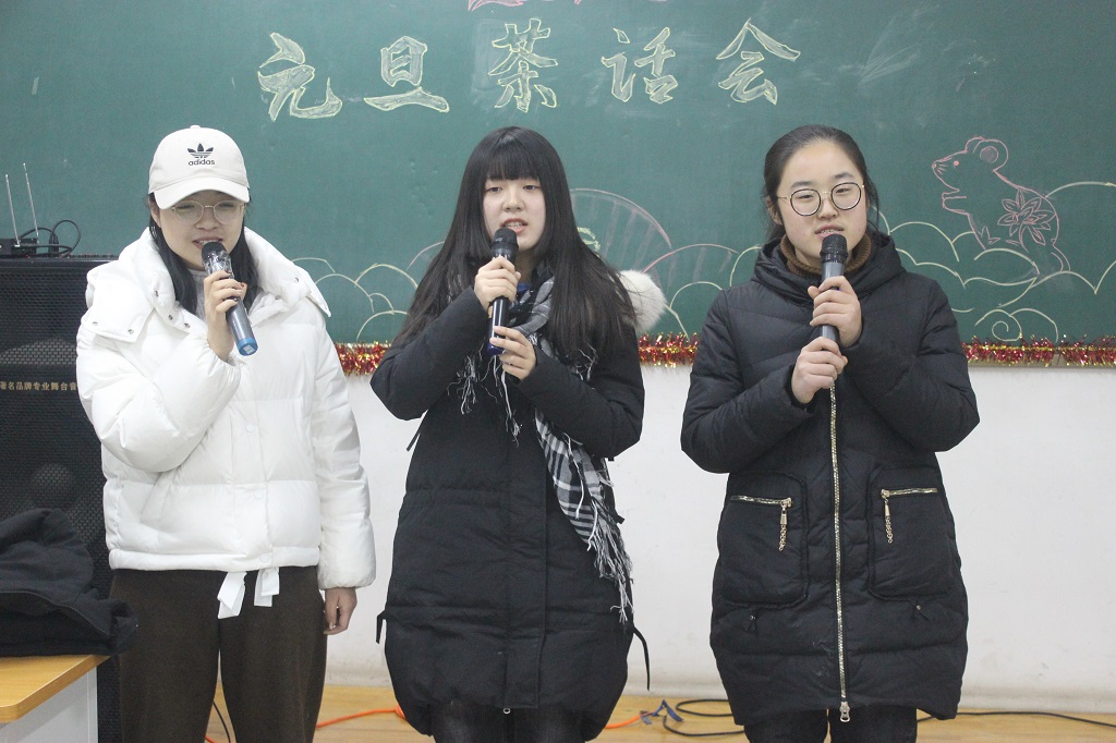 茶话会伊始,于寒向大家致辞,他对全院师生在2019年做出的努力与取得的成就给予了充分的肯定,并为大家送上新年祝福,希望莘莘学子在2020年再接再厉,创造辉煌。伴随着热烈的掌声,男生三人组登上舞台,他们打起手鼓,唱起民谣《么么》,用低沉富有磁性的嗓音表达了爱情的简单与美好。歌曲《忽然之间》的演唱者用饱含深情的语调唱出了真情实感,道出了对感情的珍惜与怀念,真挚感人。一曲节奏强烈的《山河图》将活动气氛推向高潮,表演者的说唱燃爆全场,带领观众们领略了祖国的壮丽山河,震撼着观众的心。歌曲《古风歌曲串烧》演唱者之间默契配合,歌声与歌词充分融合,四种不一样的风格,不一样的情感,赢得观众的阵阵掌声,现场气氛再度升华。击鼓传花的游戏环节将茶话会推向了另一个高潮,指定者同样也带来了精彩的表演。整场节目流行与民俗兼收,温情与火热并存,形式多样,精彩纷呈。茶话会在激昂的音乐声中落下帷幕。
