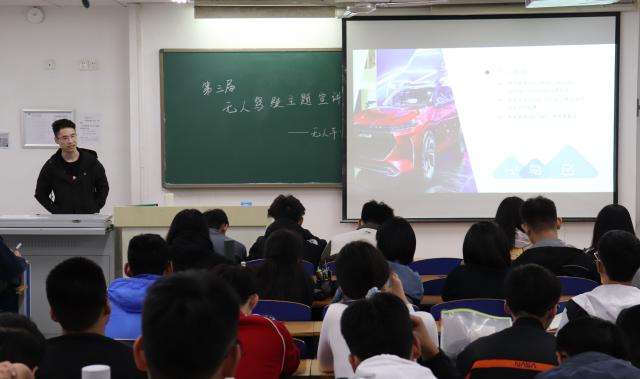东校区5#c402举办无人驾驶技术前景展望主题宣讲活动。汽车学院2019届车辆工程专业研究生孔庆峰、吴德喜担任本次活动的宣讲人。