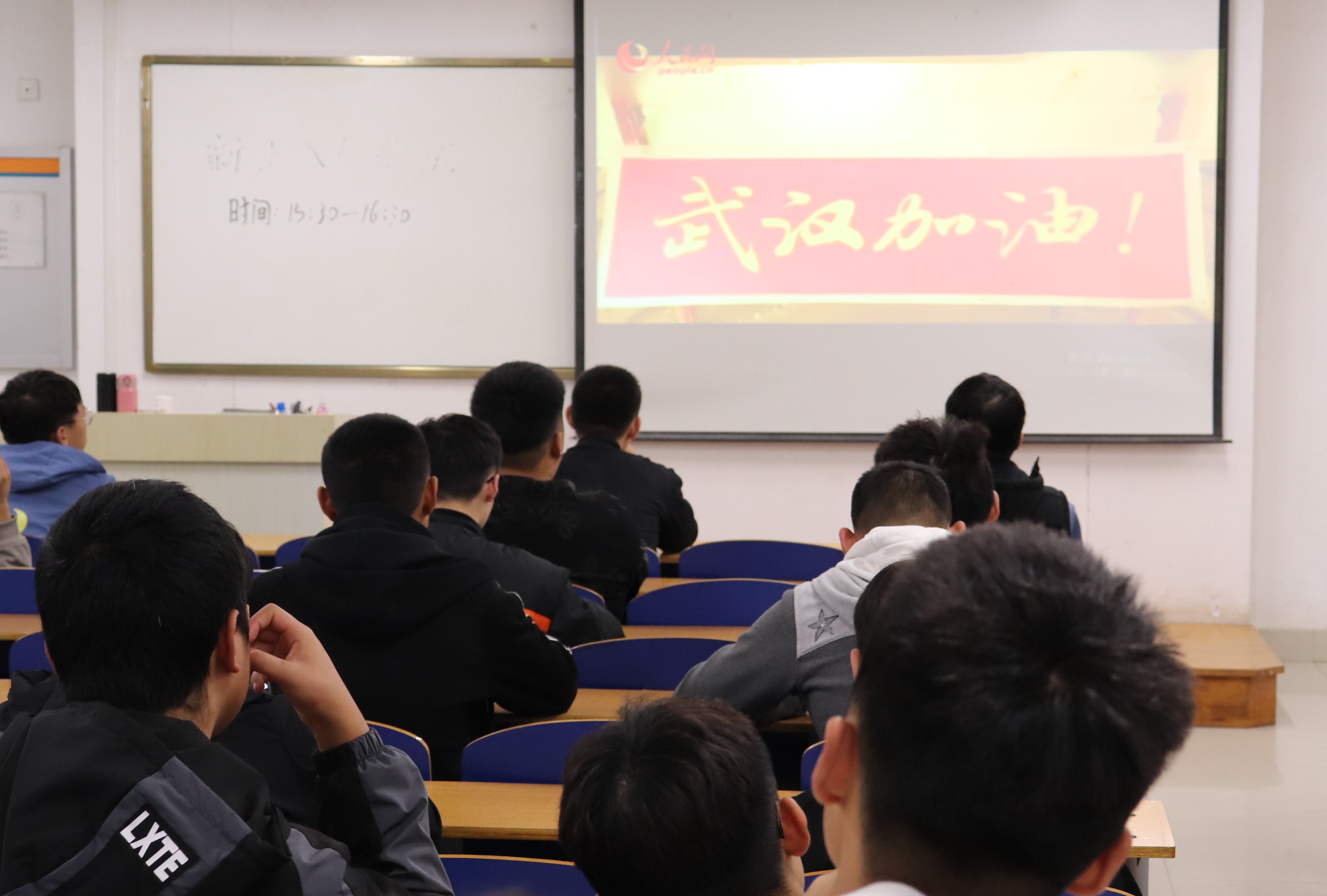 东校区5#103组织2020级新生观看“同上一堂疫情防控思政大课”,其他年级学生在宿舍同步观看。