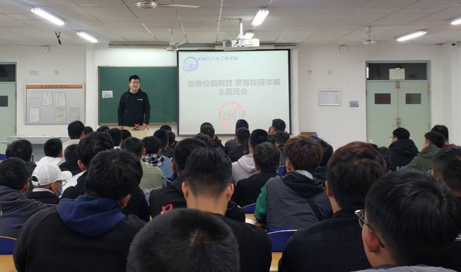 组织开展“远离校园贷,防范我先行”主题班会活动,全体2020级新生参加。汽车学院辅导员田雨、孙政担任活动的主讲人。