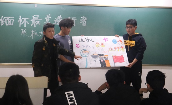 致敬最美逆行者,致敬抗击肺炎的英雄,致敬所有奋斗在一线战疫上的人们。本次展板大赛使当代大学生深刻感悟到了逆行者们勇敢无畏和牺牲奉献的精神,深刻意识到何为“岁月静好定有人负重前行”,进而将优秀品质传承下去。(通讯员 张婉茹 于艳丽 王心雨)