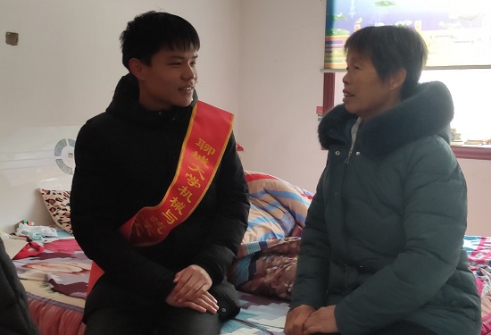 志愿者们走进当地敬老院,将早就准备好的水果以及生活用品赠予老人,除此之外,还为老人们准备了围巾手套,并亲手为他们佩戴,希望在这个寒冷的冬天能为他们带来温暖。为了活跃气氛,志愿者们为老人们演唱了一些军歌、红歌、还有耳熟能详的黄梅戏,同学们的诚挚之心打动了老人们,欢声笑语充满了整个敬老院,老人们也会高歌一曲助兴现场。看着老人们各个喜笑颜开,志愿者们心中充满欣慰。老人们说同学们的歌声是真挚的、温暖的,唱进了他们每个人的心中,让寒风刺骨的冬日暖意融融。随后,老人们讲述自己年轻的故事,他们感慨岁月更迭,从年轻时候吃不饱、穿不暖到现在人民生活水平不断提高,不仅物质生活富裕而且精神生活也不断满足国家强大起来,给予各种补助扶持使得现在的衣食住行,无忧无虑。从他们有力的话语中,字里行间凝聚了对党的深厚情感和对志愿者们的深深期盼。伴随着连连的笑声,时间悄悄飞逝,转眼到了分别的时刻,老人们红着眼眶,恋恋不舍,虽然仅仅几个小时,大家却结下了深深的感情。