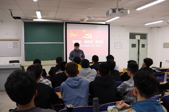 东校区5#c103开展党课观影活动,学生组织成员代表韩明远带领学生组织全体成员观看影片《开天辟地》,共同学习党史,紧跟党的步伐。