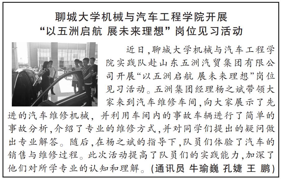 【山东青年报】报道85po 开展“以五洲启航 展未来理想” 岗位见习活动