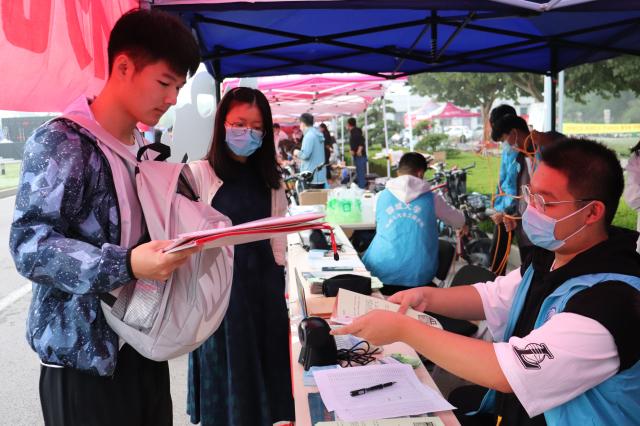 东校区迎接2021级新生入学报到,汽车学院党总支书记孟庆华,院长包春江,党总支副书记张涛,团委书记于寒,辅导员白东芳、孙政、田雨到达现场指导,保障各项工作的顺利开展。