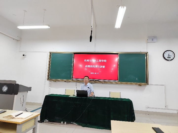 在东校区5号教学楼C106多功能室开展师德师风学习讲堂活动,学院党委书记包春江主持,全体教职工参加。