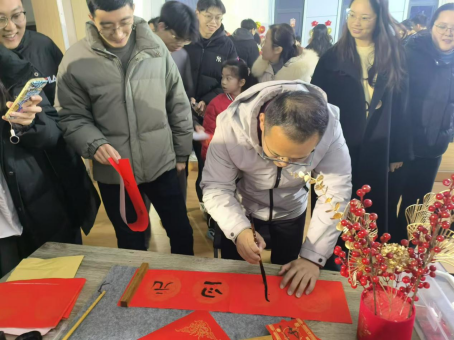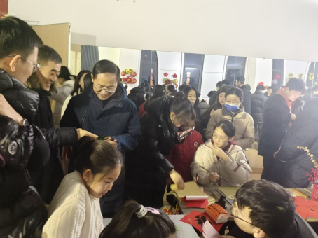 校党委副书记李江涛来到游艺宫现场,参与猜谜活动,对浓厚的节日气氛高度肯定。大家欢聚一堂,兴致勃勃、热情高涨地参与到各个项目之中,下象棋、猜灯谜、套环、写对联……赢得了广大师生的热烈关注和一致好评。象棋比赛紧张刺激,棋手们全神贯注,每一步棋都深思熟虑,周围的观众也沉浸在智慧的较量之中。写对联活动中,老师同学们挥毫泼墨,一幅幅寓意吉祥的对联在笔下诞生,引领老师同学们深入探索并亲身感受了节日中所承载的历史底蕴和文化特色。此外,活动现场还为大家准备了丰富多样的奖品,让大家在游艺的同时收获满满。