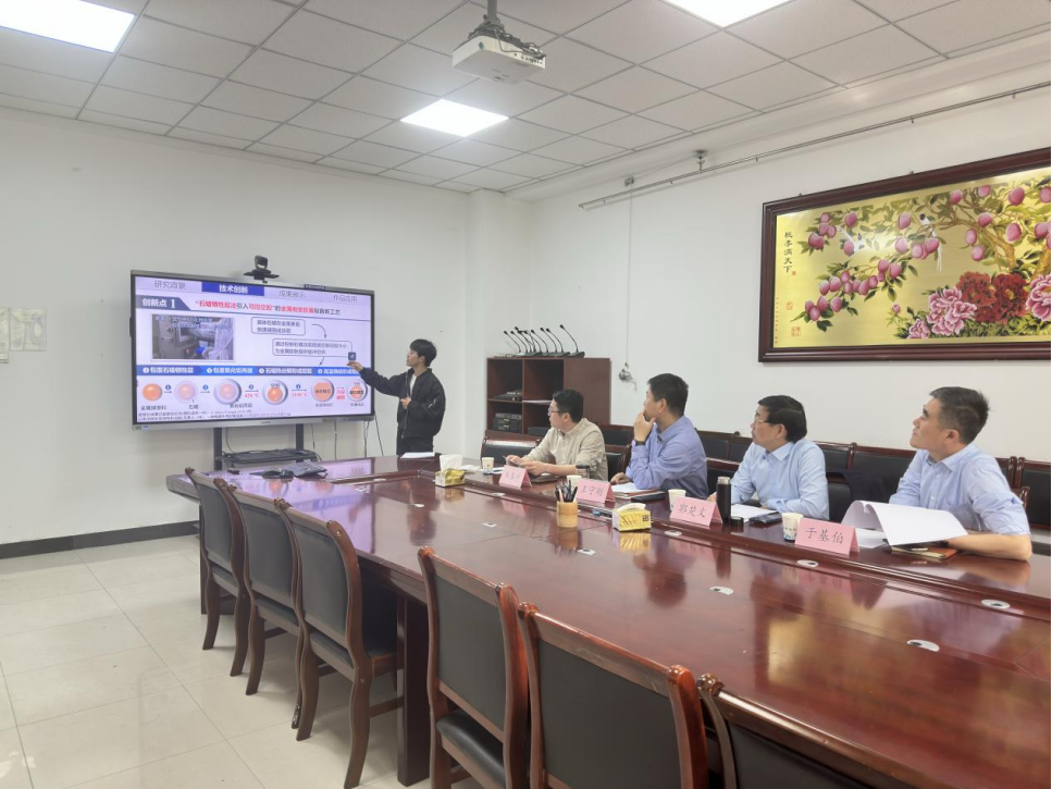 会议上,代建龙同学向四位评委老师汇报了团队的“高能蓄热/空气分离一体化载氧体耦合相变胶囊及高效储能发电系统”项目。他从研究背景、技术创新、成果展示和作品应用四个方面展开,对比传统高温熔盐储热模式,阐述了金属相变材料的优越性,同时介绍了载氧体化学链空气分离技术的低能耗性。展示结束后,王守刚书记对代建龙同学的汇报表示肯定,他强调在展示过程中,讲稿注意展示逻辑与PPT有效配合,以达到更好的展示效果;此外,他还建议运用通俗易懂的语言、生动形象的比喻以及精准的概括,快速地向非专业领域的评委老师传达项目的创新点与核心价值。其他与会老师结合自身经验就汇报题目、申报书的内容及格式等方面给予了指导,为团队后续更好地进行成果整理与展示提供改进方向。