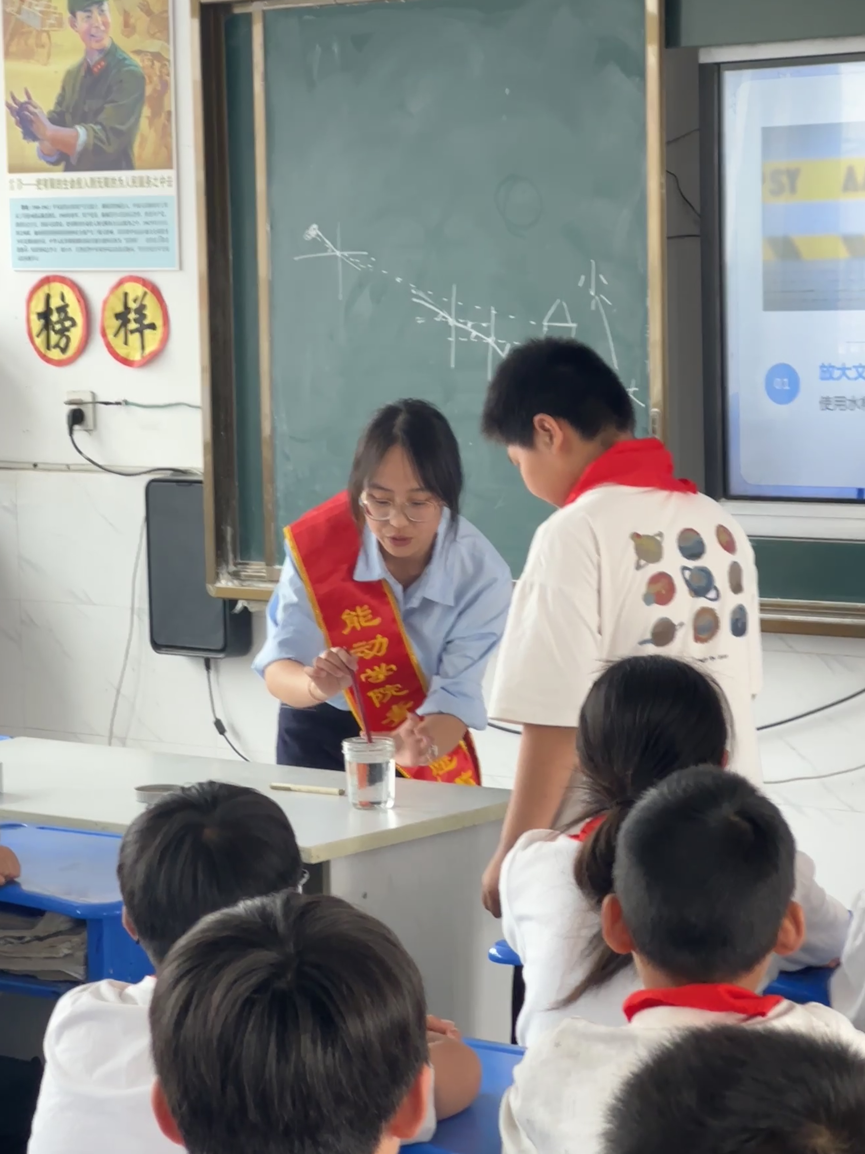 本次支教课程分为防溺水与光学现象科普两个专题。在防溺水安全教育课上,志愿者们从防溺水注意事项、急救措施等多个方面入手,为孩子们系统讲解了溺水自救与互救知识。考虑到当地水域的实际情况,志愿者们着重强调了“六不准”原则。光学现象科普课同样精彩纷呈。志愿者们自行设计课程内容,运用棱镜、激光笔等教具,直观演示了光的折射、色散现象,还引导孩子们观察眼镜、水杯等日常物品中的光学原理。