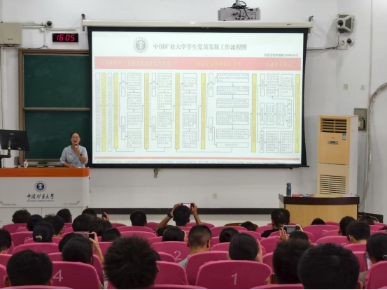的历史沿革,回顾了学校自1909年创办以来,历经14次搬迁、12次易名的百年沧桑。他结合学校创办的历史背景,深刻阐释了每一位矿大人应有的责任担当,以及“开发矿业,开采光明,建设祖国,造福人类”的矿大人骄傲。王老师强调,作为新时代的矿大学子,我们要主动承担起传承矿大精神与文化的责任,厚植家国情怀,为国家发展贡献青春力量。