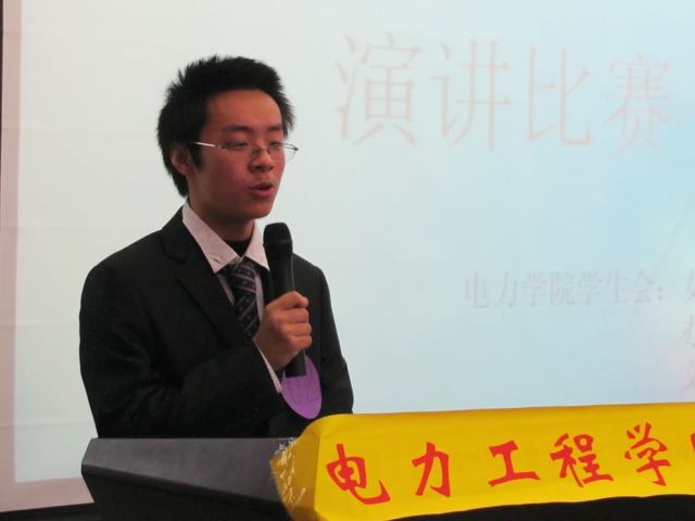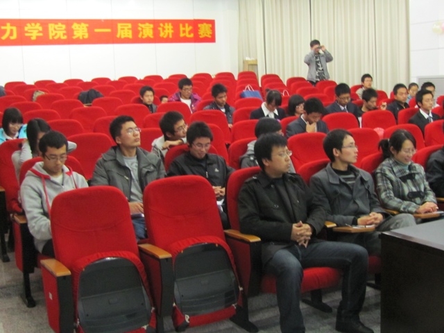 决正式比赛开始前,孙老师首先发言,她希望每位选手都能发挥出自己的真实水平,并祝愿比赛能够取得圆满成功。比赛过程精彩纷呈,八位选手风格各异,但无不语言流畅,感情充沛。王道程同学在他的《创业之梦》中从创业的初衷、创业的价值、创业的要求三方面表达了自己的感想。他旁征博引,以实例来吸引、打动同学。而王雨玮同学的《释放青春激情,点燃创业梦想》在他精彩的演说和振奋人心的背景音乐衬托下则显得激情四射。他告诉同学们青春蕴着无穷的能量,创业需要自己去不懈追求。