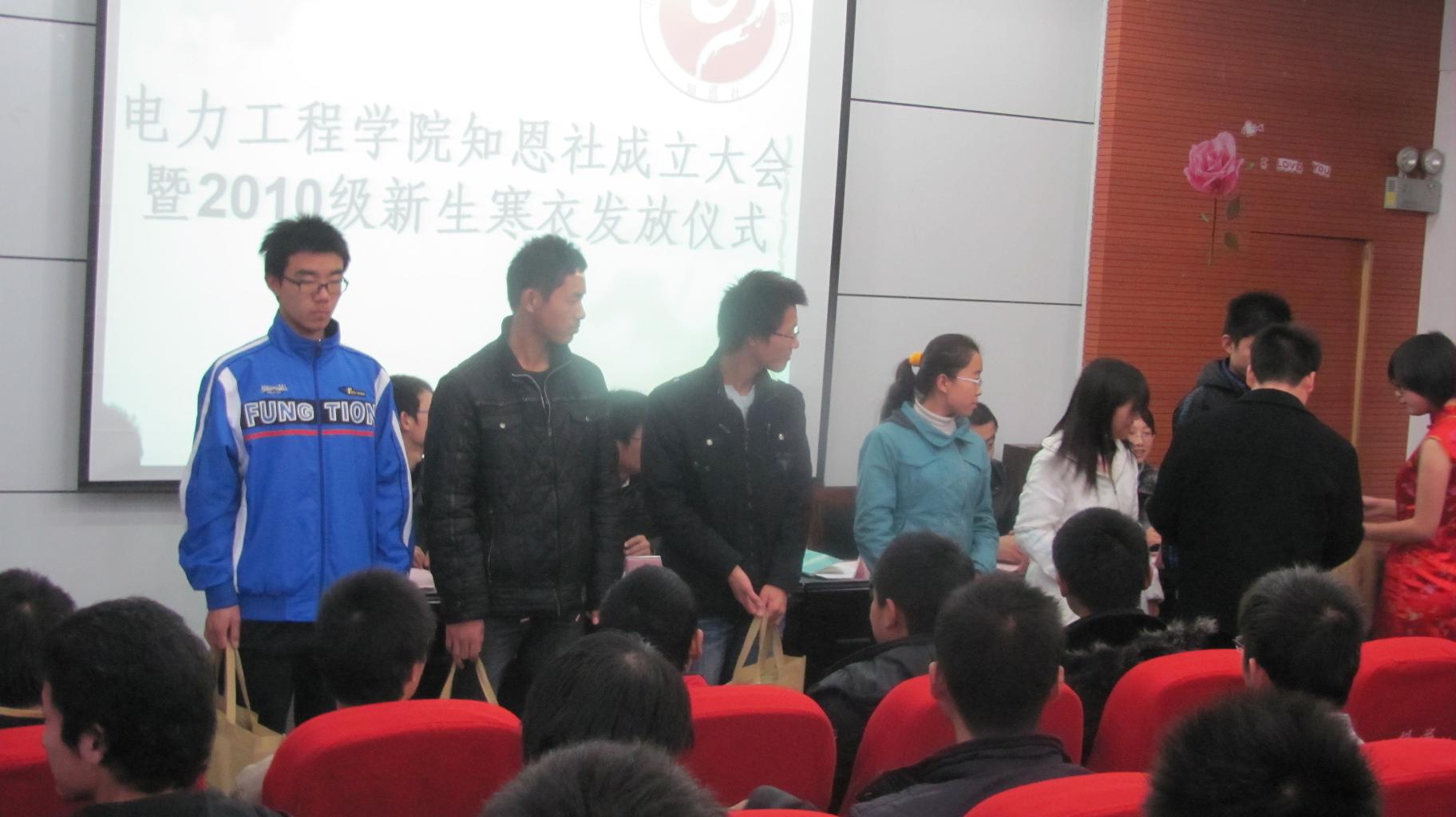 知恩社在材料学院报告厅举行了知恩社成立大会暨2010级新生寒衣补助发放仪式。出席会议的有我院党总支副书记张磊、校学生资助管理科宋冰老师、院团委书记田玉河,辅导员孙婉老师、弓海军老师, 85po