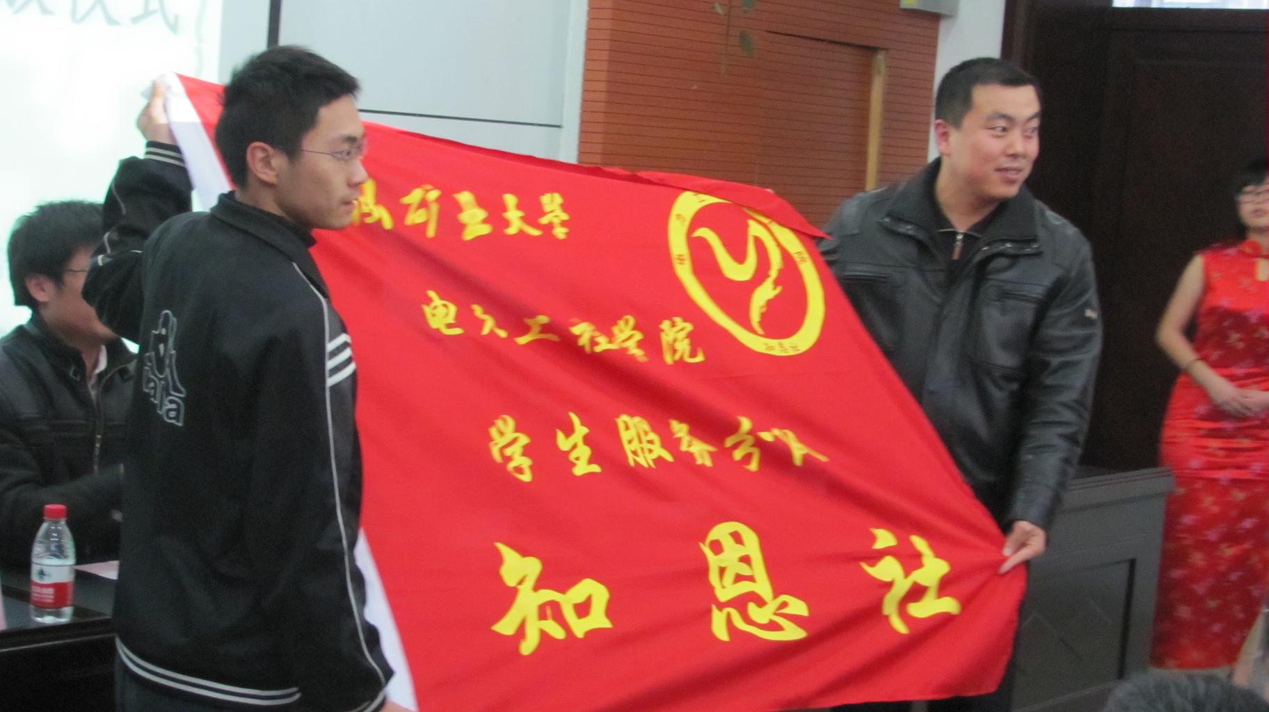 知恩社,并对知恩社成立表示祝贺,对知恩社成员提出殷切希望。随后,知恩社社长张海龙以自己如何战胜贫困,靠勤工助学来维持开支,从贫困中站起并创造佳绩的事实发表了演讲,号召同学们要勇于面对贫穷,懂的知恩图报,用爱心回报社会。