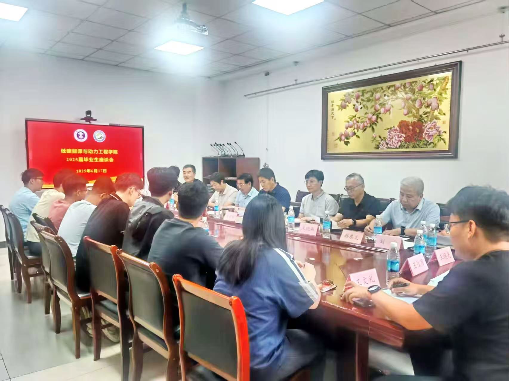 2025届毕业生代表座谈会在学院楼A229会议室举行。学院党委书记王守刚,院长仲晓星,副院长朱晓东、王利军、刘方,院关工委常务副主任郭楚文,院教学督导韩东太,能源与动力工程系副主任、党支部书记王焕光,储能科学与工程系副主任、党支部书记郑章靖、各科室负责人与25名本、硕、博毕业生代表齐聚一堂,共话成长与未来。会议由党委副书记于基伯主持。