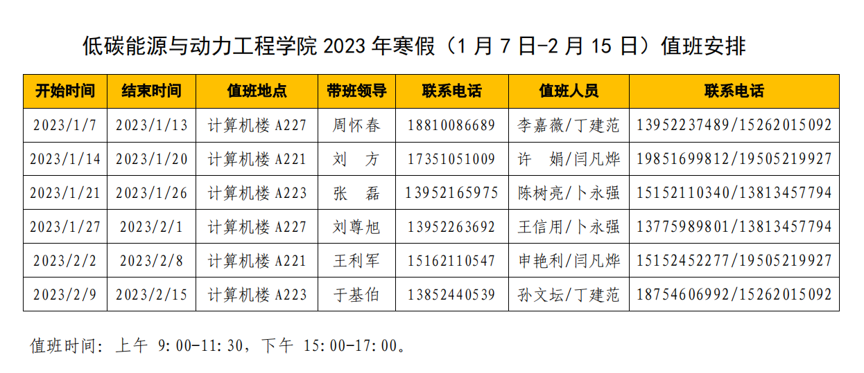 能动学院2023年寒假值班安排