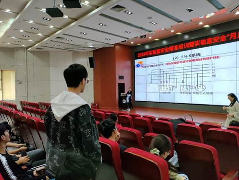 师生实验室安全意识、技能以及对突发事件的应急处置能力营造良好的实验室安全文化氛围。学院联合实验室与设备管理处,于9月28日上午9:30在信控楼A101报告厅举办2023年实验室安全培训系列讲座第一期,本次讲座由电气工程学院副教授董海波老师主讲,讲座的主题为“实验室电气安全与防护”。内容包括基本电气知识、实验室中的主要电气安全问题、静电防护、触电急救方法和灭火方法。