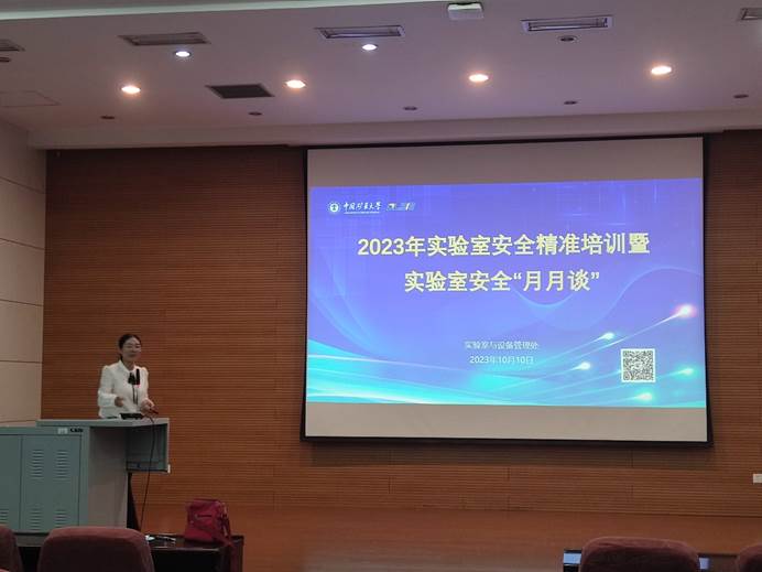 师生实验室安全意识、技能以及对突发事件的应急处置能力,营造良好的实验室安全文化氛围。学院联合实验室与设备管理处,于10月10日上午9:00在化工楼A101报告厅举办2023年实验室安全培训系列讲座第二期。本次讲座由化工学院李佩老师主讲,讲座的主题为“实验室化学品和气体气瓶的安全管理”。内容包括化学品安全概述、化学品安全管理、气体气瓶安全概述、气体气瓶安全管理。