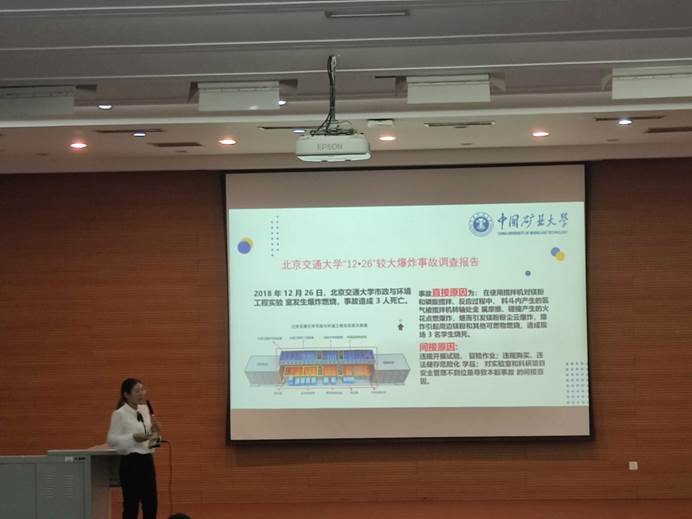 李佩老师在第一部分讲述化学品时,首先讲到化学品使用与处理不当会造成严重的事故,列举了一系列的重大化学事故,说明了事故产生的原因。然后列举了实验室常见的化学品标识,解释了实验室化学药品的管理条例与相关的法律法规,讲解了常见化学品的基本操作和个人防护要求。第二部分讲述气瓶时,首先讲了气瓶的定义、分类及危害,然后讲了实验室气瓶的管理,最后讲解了气瓶的基本安全操作和应急处置方法。