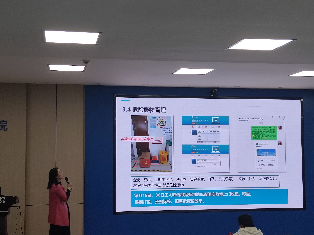 师生实验室安全意识、技能以及对突发事件的应急处置能力,营造良好的实验室安全文化氛围。学院联合实验室与设备管理处,于10月26日上午9:30在数学学院B102数学大讲堂举办2023年实验室安全培训系列讲座第三期,之后在体育场西侧进行消防灭火演练。本次培训主题为“实验室安全管理与应急管理”。内容包括实验室安全管理概述、实验室安全管理依据、学校实验室安全管理要求及重点解读实验室应急管理、实验室消防灭火演练。